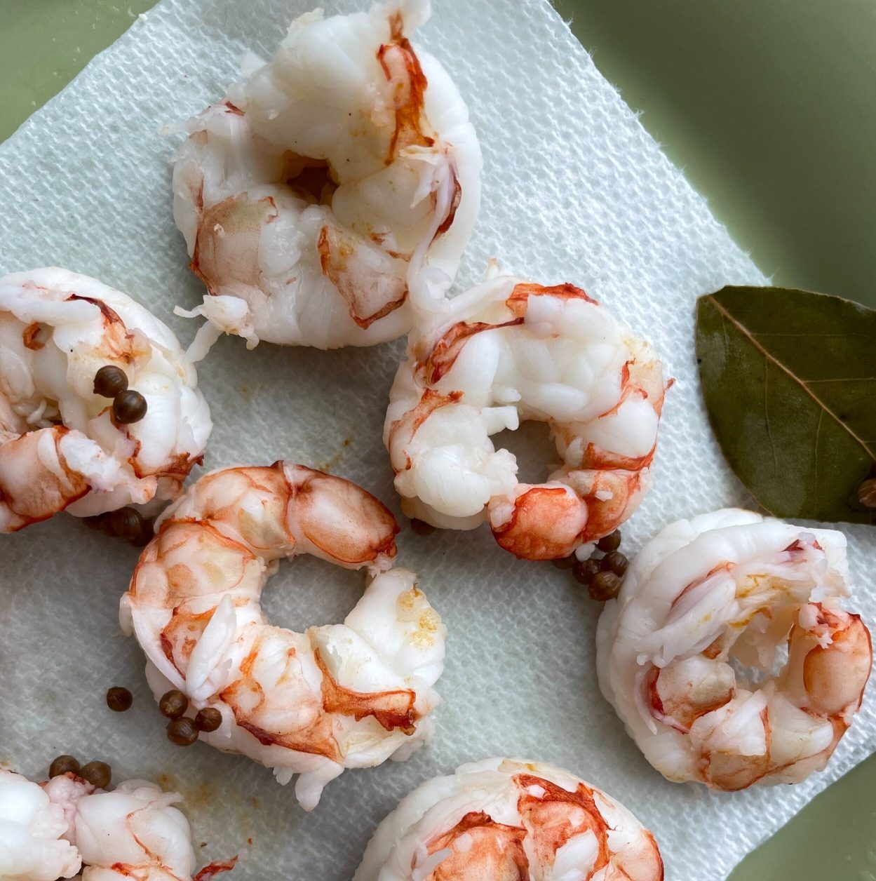 Quickly remove shrimp from water and place on paper towel to dry and cool